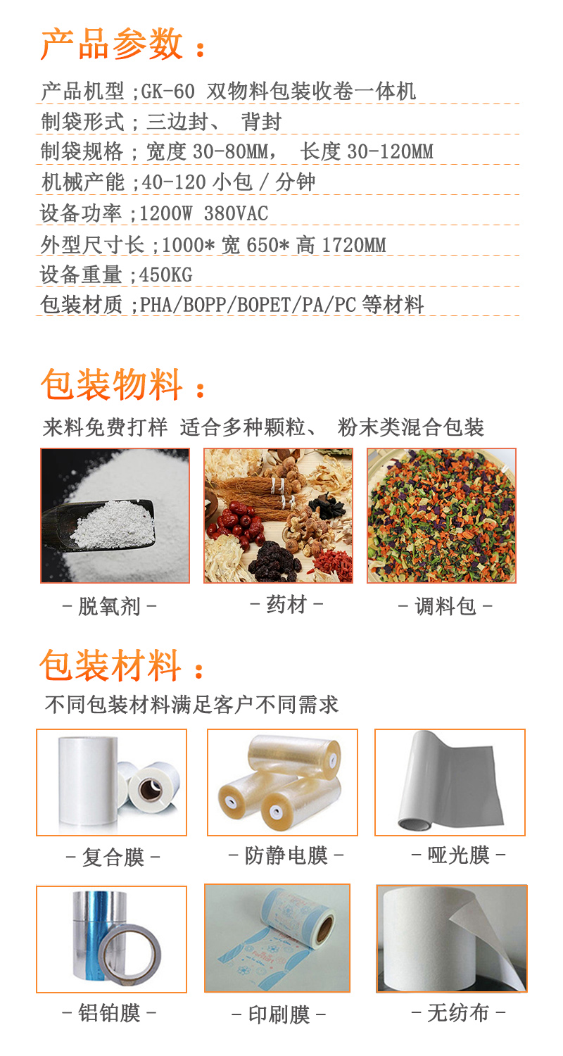 根據物料種類和袋型要求來配備包裝機 以達到客戶要求。