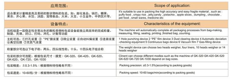 廣泛適用于食品類、五金類、農產品類、日化類、醫藥類等多個行業領域的顆粒類、不規則類產品的包裝